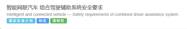 官方发布了《智能网联汽车组合驾驶辅助系统安全要求》的报批稿。