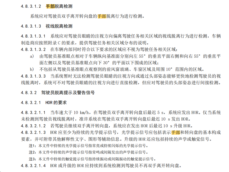 好在 L2 辅助驾驶新国标,对车辆的驾驶员状态监测系统,安排了一整套强制要求,让车子实时检测驾驶员手部和视线状态。
